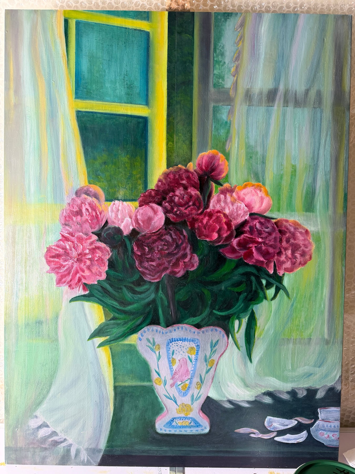 This piece is perfect for art enthusiasts who appreciate the subtle beauty of floral art. Every brushstroke captures the intricate details of peonies, from their velvety petals to their lush, flowing forms. The impressionistic technique adds a sense of movement and life, creating the illusion that the flowers are swaying gently in the breeze. The soft palette is ideal for spaces where tranquility and sophistication are desired, such as living rooms, bedrooms, or elegant office spaces.